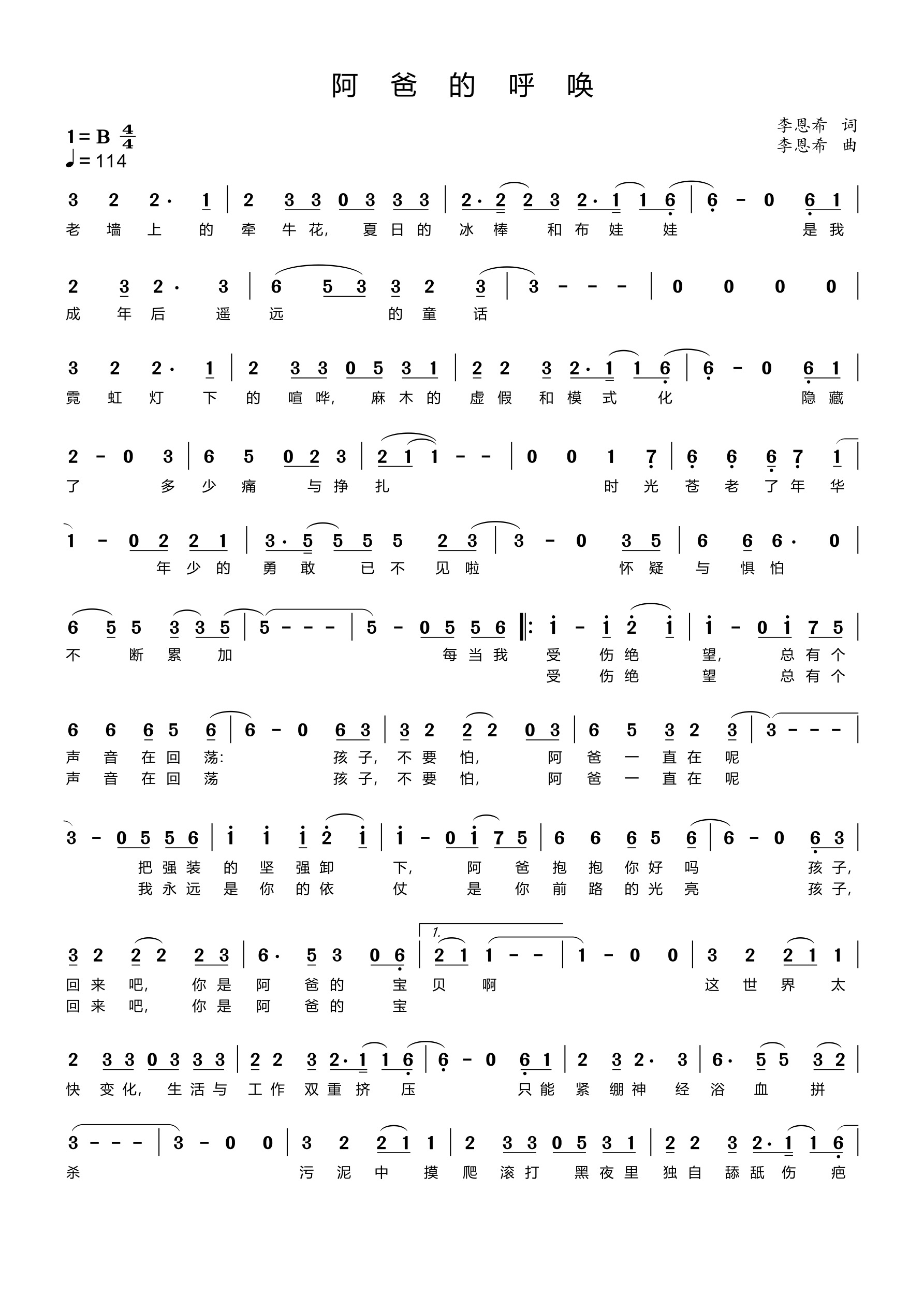 歌词中的阿爸,是我地上的父亲,更是我们天上的阿爸。