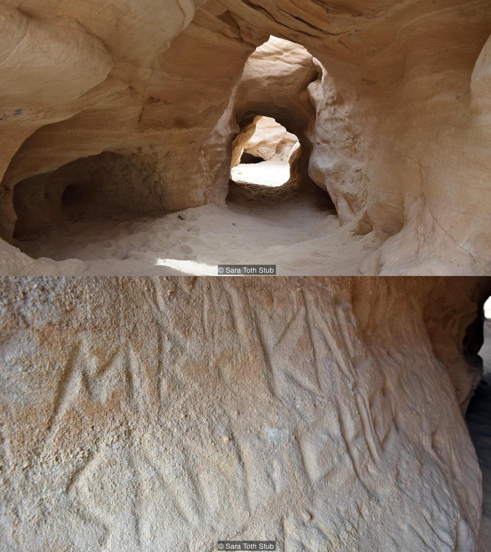 上图:Timna铜矿坑的内部,四千多年前古代矿工留下的文字和其他痕迹在岩壁上仍然可见。