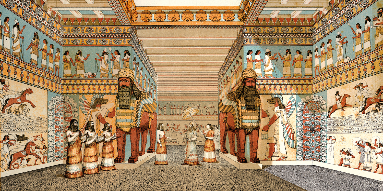 上图:亚述王西拿基立的图书馆中充满偶像。亚述的神庙中偶像众多,主神是众神之王亚述(Ashur)及战争和爱情女神伊施她尔(Ishtar),还有风神阿达德(Adad)等次要神祇,各自有其崇拜中心和祭司。这些神庙得到政府的丰厚补助,财源是连年战争期间对邻国搜掠所得。他们的仪式和宗教节庆多是借自古老的苏美和巴比伦。在撒珥根二世的宫殿里,墙上写着邀请「亚述,众神之父,伟大的主,和住在亚述的伊施她尔」来此安居。西拿基立将亚述首都迁至尼尼微,为女神伊施他尔重建了巨大的神庙建筑,企图建立敬拜众神的宗教中心。