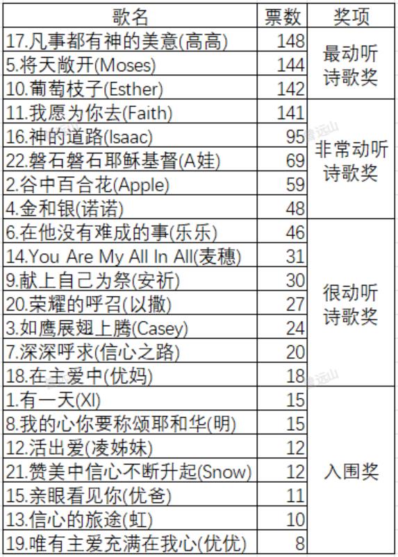再次感谢所有参与推荐和投票的弟兄姊妹!